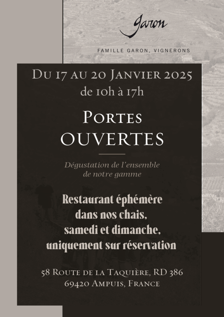 Merci de réserver par mail à : vins@domainegaron.fr ou par téléphone : 04 74 56 14 11